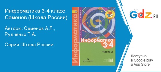 В современном мире, изучение такого предмета как информатика очень актуально. Однако, сама по себе дисциплина довольно-таки сложная и ее освоение часто вызывает трудности у ребят. «ГДЗ по Информатике 3-4 класс Учебник Семёнов, Рудченко (Просвещение)» поможет избежать многочисленных ошибок и даст возможность разобраться с особо сложными моментами понимания тематического материала.
